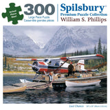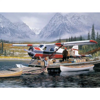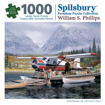 Step into a breathtaking wilderness adventure with Last Chance, a 1000-piece puzzle by renowned artist William S. Phillips. This detailed scene captures a remote mountain lake where a red-and-white floatplane prepares for departure. Snow-capped peaks, a rustic dock, and serene waters evoke a sense of exploration and quiet solitude. This puzzle is a perfect escape for outdoor and aviation enthusiasts alike.