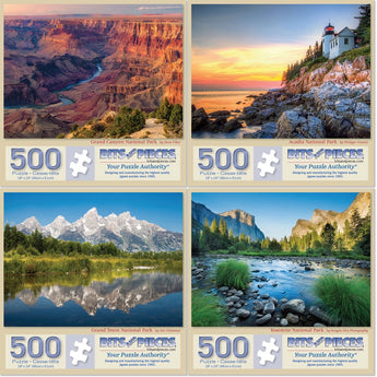 Explore the stunning landscapes of America's most iconic national parks with this set of four puzzles. Featuring *Grand Canyon National Park* by Dean Fikar, *Acadia National Park* by Philippe Gratton, *Grand Teton National Park* by Nat Chittamai, and *Yosemite National Park* by Sungjin Ahn, each puzzle brings the beauty of nature into your home. Available in 500 and 1000 pieces, this collection offers a perfect combination of challenge and relaxation, making it an ideal gift for nature lovers and puzzle enthusiasts alike.