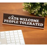 Remind anyone who comes in your office they're tolerated, but cats would be your ideal coworkers. The perfect addition to a cat lover's desk. Wooden deskplate with metal holder.