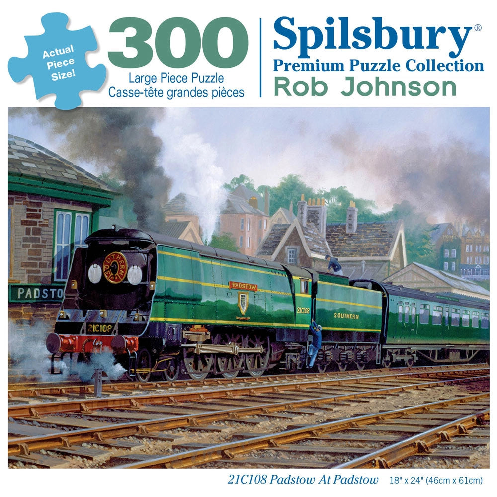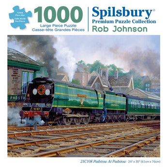 Relive the golden age of steam trains with the 21C108 Padstow at Padstow Jigsaw Puzzle by Rob Johnson. This stunning puzzle captures the vibrant scene of a classic steam locomotive at Padstow station. Perfect for railway enthusiasts and puzzle lovers alike, it's available in two piece counts for varying skill levels.