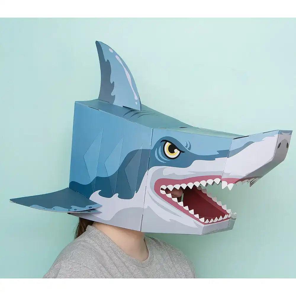 Kids can turn themselves into a shark for a ferociously good time. A great craft project for those who dare to encounter this feared hunter of the seas. Kit includes pre-cut printed cardboard pieces and full instructions. Mask measures 17-1/2" x 17" x 14" when assembled. Great fun for halloween or any time of year. Imported. Ages 4 and up.