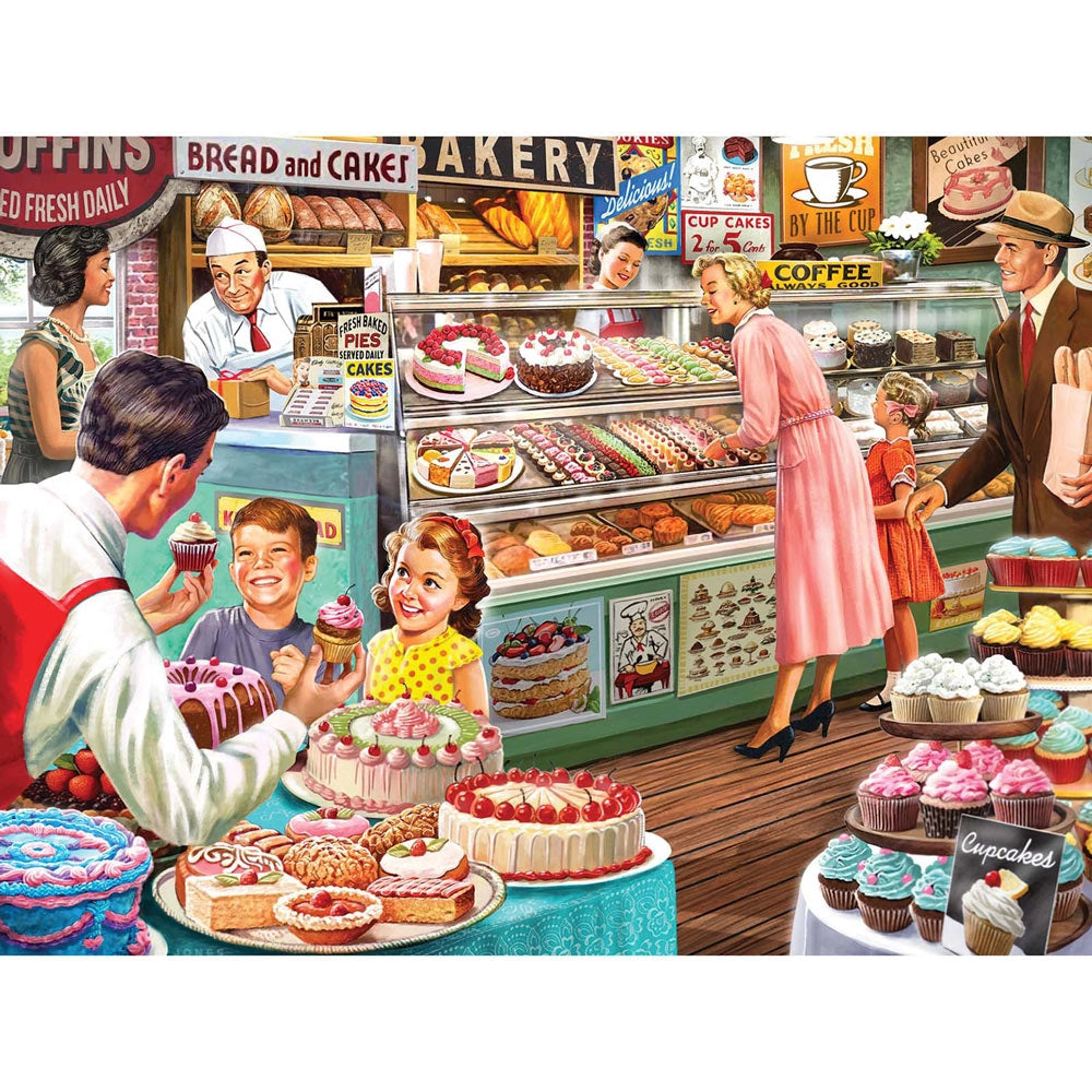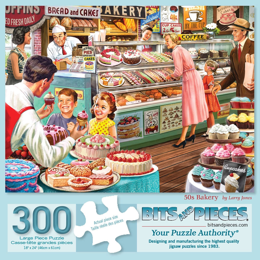 Perfect for puzzle enthusiasts and lovers of all things sweet, the "50's Bakery" puzzle offers a fun and engaging way to enjoy the comforts of a beloved bakery from the comfort of your home. With its vibrant colors and intricate details, this puzzle is available in both 300 and 500-piece counts, providing hours of enjoyable assembly and a sense of satisfaction upon completion.