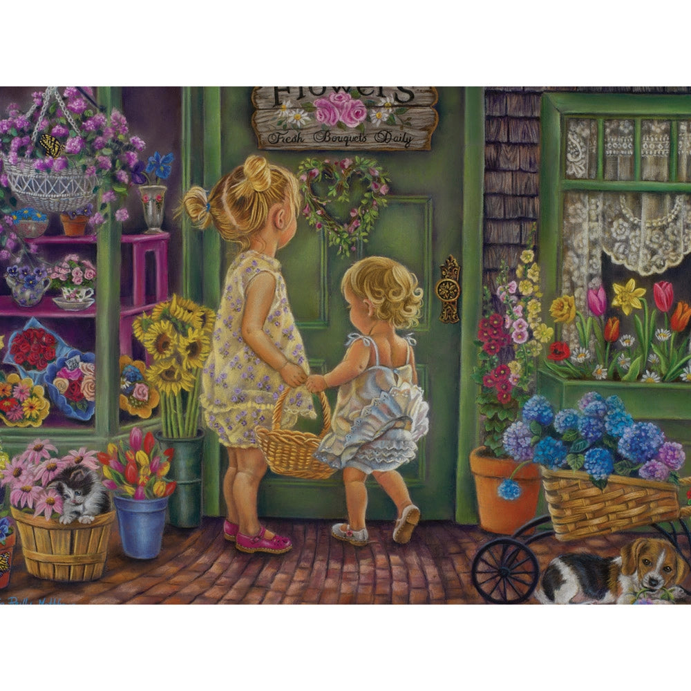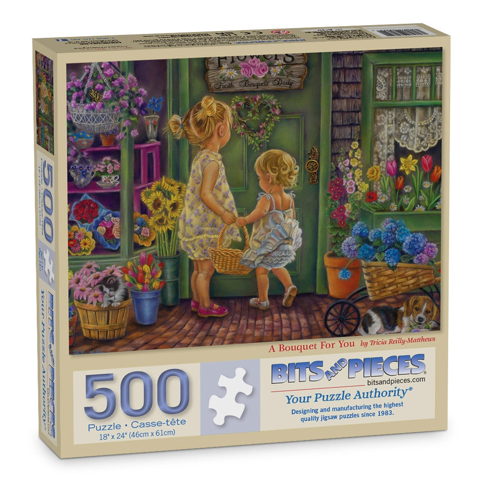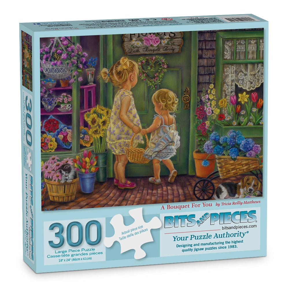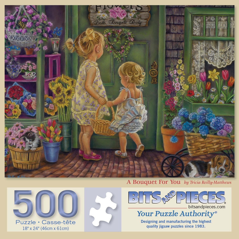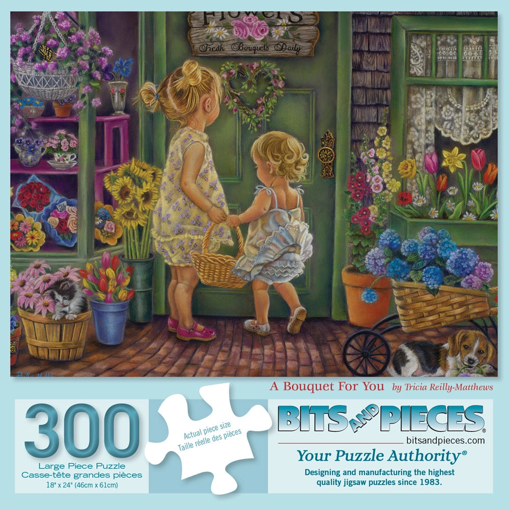 In A Bouquet for You by Tricia Reilly-Matthews, a girl shares freshly picked flowers with her pup while surrounded by a rainbow of blooms. The porch setting, pastel colors, and sweet expressions make this jigsaw puzzle a lovely reminder of how simple acts can brighten any day.