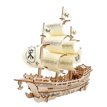 Set sail on this 80-piece 3D puzzle. Piece together a majestic ancient style sailboat then display your hard work. Measures 7" x 5" x 2-1/2" when complete. Made of plywood. Ages 14+.
