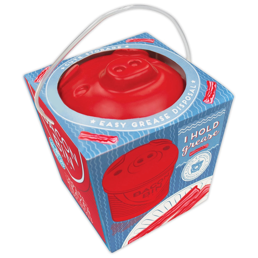 Make bacon prep and cleanup easier—and a lot more fun— with the whimsical Bacon Bin Grease Holder. Crafted from sturdy, BPAfree, FDA-approved silicone, this clever kitchen helper is designed to safely strain, store, reuse, or dispose of bacon grease without the mess. Heat-safe up to 500°F, it allows you to pour hot grease directly through the removable silicone strainer and into the bin, where it 2 Points! cools and solidifies for later use or easy disposal. The charming pigface lid seals in odors while adding a playful touch to your countertop. Dishwasher, refrigerator, freezer, and microwave safe. Holds up to a cup of grease and measures 4”h.