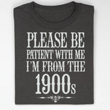 Step back in time with the Please Be Patient With Me, I’m From the 1900s T-shirt — a hilarious throwback for anyone who survived dial-up tones and mix tapes. This black, short-sleeved crew neck features bold white lettering that proudly honors the analog era. Whether you grew up with rotary phones, hot rods, or Friday night trips to Blockbuster, this tee delivers laughs and nostalgic nods in equal measure. It’s a clever gift for Gen Xers, Millennials, or anyone who remembers life before smartphones.