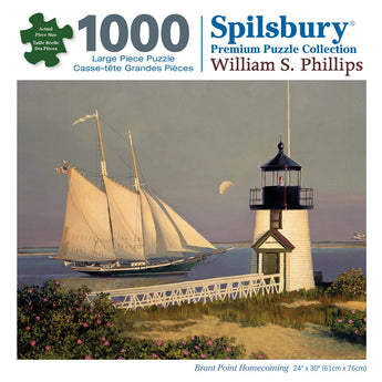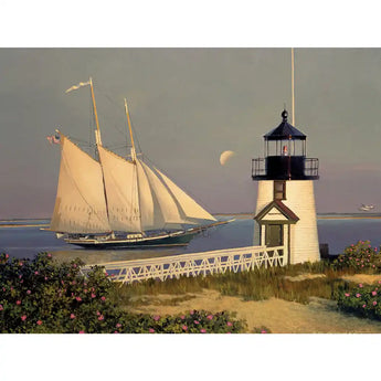 Immerse yourself in coastal serenity with "Brant Point Homecoming," a stunning puzzle designed by William S. Phillips. Featuring a graceful sailboat approaching a classic lighthouse, this tranquil seascape captures the beauty of a peaceful homecoming by the sea. Perfect for maritime enthusiasts, this puzzle offers a relaxing and rewarding experience. Bring the charm of the coast to your puzzle collection.