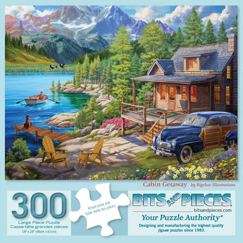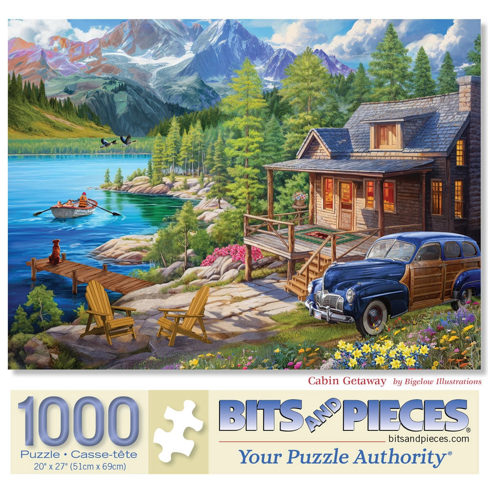Escape to the great outdoors with Cabin Getaway, a peaceful lakeside retreat by Bigelow Illustrations. With cozy wooden decks, canoes ready to launch, and a mountain view in the distance, this puzzle lets you experience the tranquility of nature from the comfort of your home.