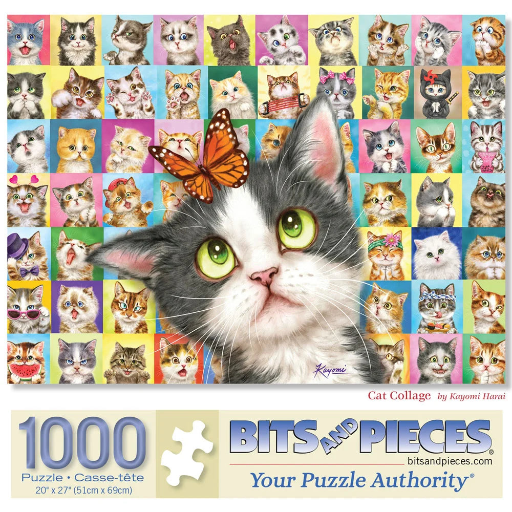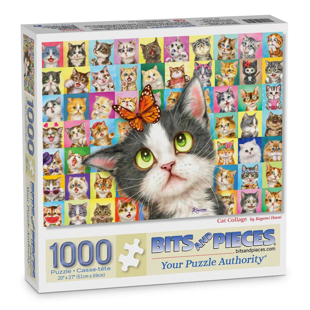 Purr-fectly packed with personality, the Cat Collage jigsaw puzzle by Kayomi Harai features a crowd of curious kitties in all their fluffy glory. From tuxedos to tabbies, every square is a whiskered delight—with one extra-adorable kitten front and center, wearing a bow and stealing the show.
