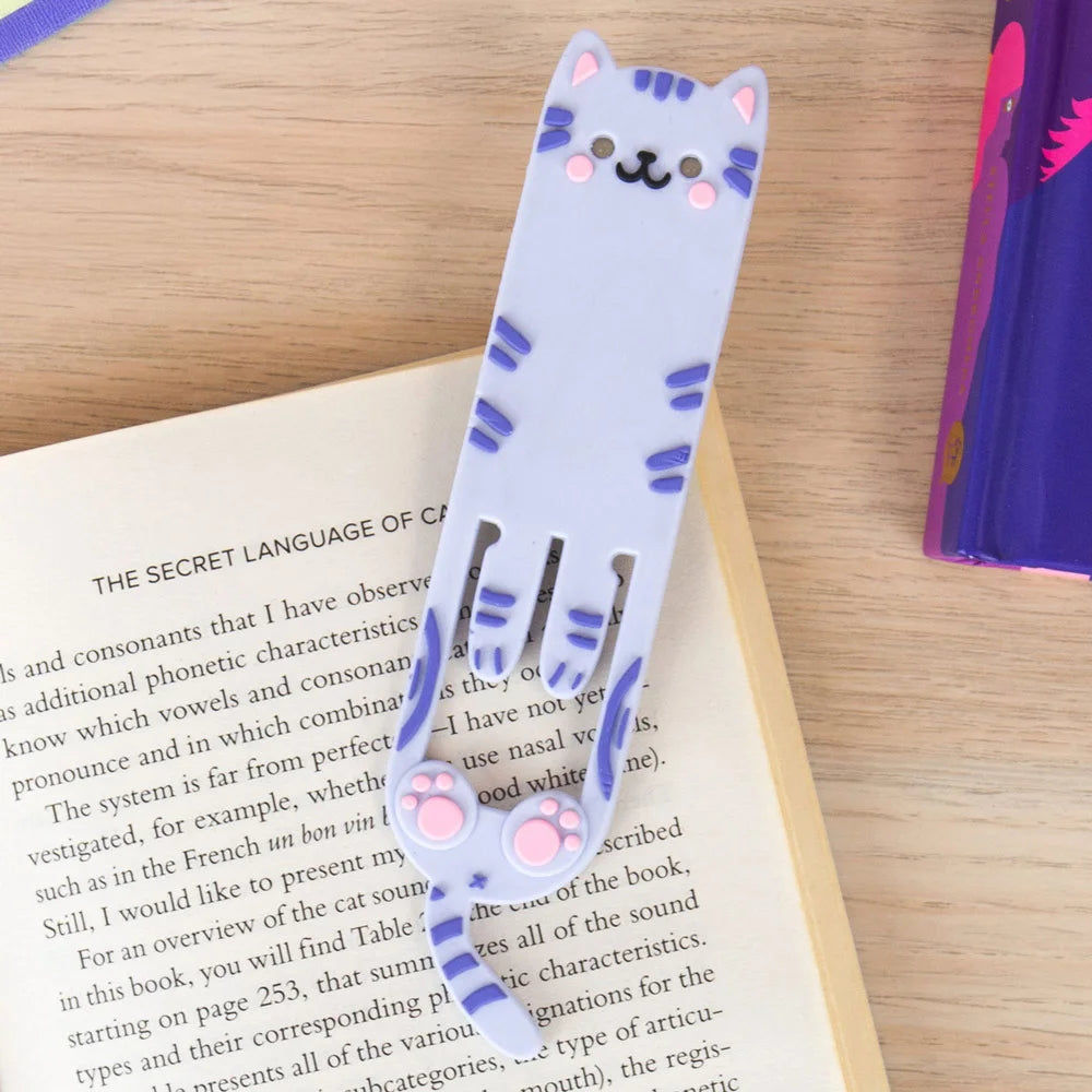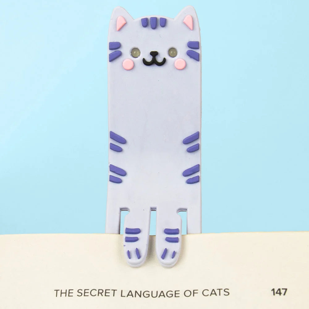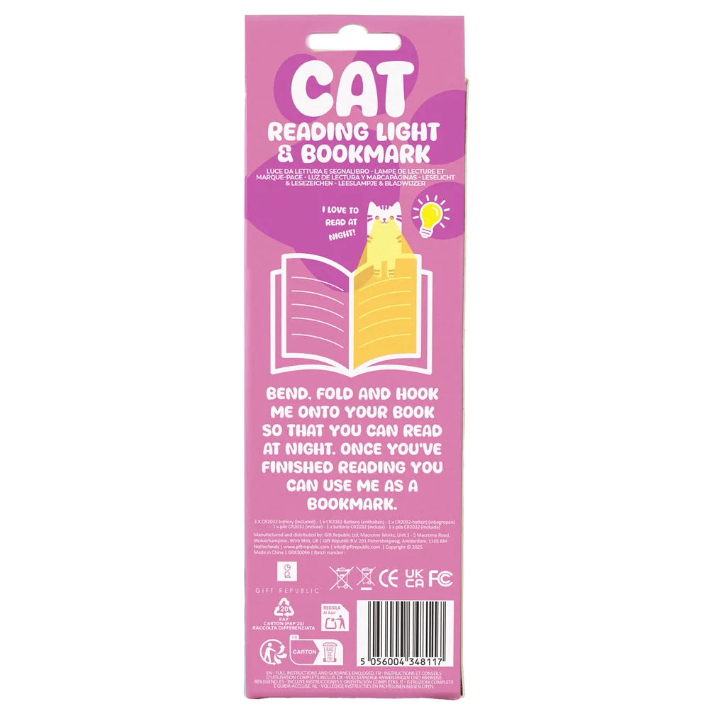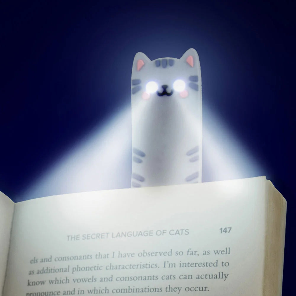 Meet your purr-fect nighttime reading companion! This clever cat bookmark not only saves your place but lights it up too—its glowing eyes cast a gentle beam so you can read comfortably. The flexible design bends and adjusts to aim the light exactly where you want it. Securely clips to your book, staying put even as you flip through pages. Ready to glow right out of the box, it runs on a replaceable button battery and features a simple on/off switch for convenience. Measures 6"H x 1-1/2"W x 1/2"D.