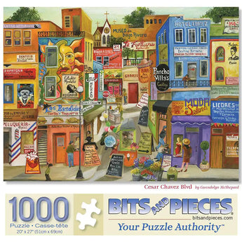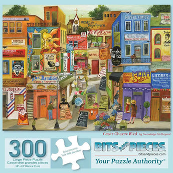 Discover the vibrant life of Cesar Chavez Blvd. by Gwendolyn McShepard. This jigsaw puzzle features a bustling street scene filled with colorful storefronts, lively characters, and cultural charm. It is perfect for those who love urban artistry and exploring new cultures through jigsaw puzzles.
