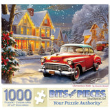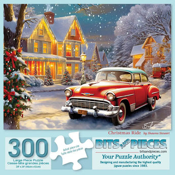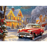 Revisit a time when a drive through snowy streets was the highlight of the season. Christmas Ride by Shawna Stewart shows a vintage red car parked outside warmly lit houses, evoking the charm of holiday traditions and cozy neighborhoods blanketed in snow.