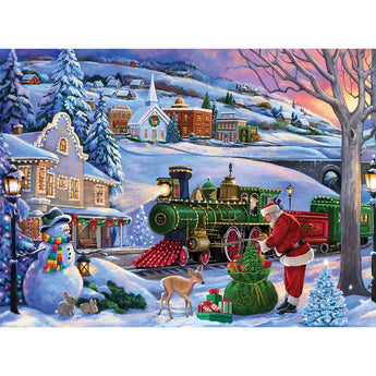 Hop aboard the Christmas Train! This charming puzzle features a snow-covered town where a festive train chugs through the station, delivering holiday spirit to all. Bright lights and decorations create a warm and inviting holiday atmosphere.