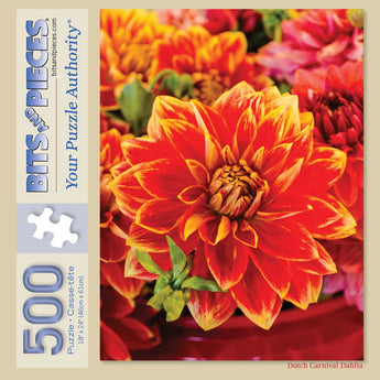 This jigsaw puzzle showcases the captivating beauty of a dahlia, featuring intricate petals in various vibrant hues such as deep red, pink, and orange. The puzzle invites you to explore the delicate details of the flower, making it a visually appealing and satisfying challenge for any puzzle enthusiast. Puzzles are perfect for both intermediate puzzle enthusiasts and group activities.