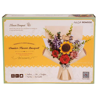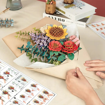 Say it with flowers that last forever! This charming 581-piece wooden puzzle bouquet features a sunflower, pink rose, lilac, red camellia, and eucalyptus wrapped in elegant paper with a wooden bow. Whether you assemble it as a heartfelt gift or present it as a DIY set, this stunning bouquet is perfect for any occasion. With a 3+ hour assembly time, it’s a delightful project for ages 8 and up.
