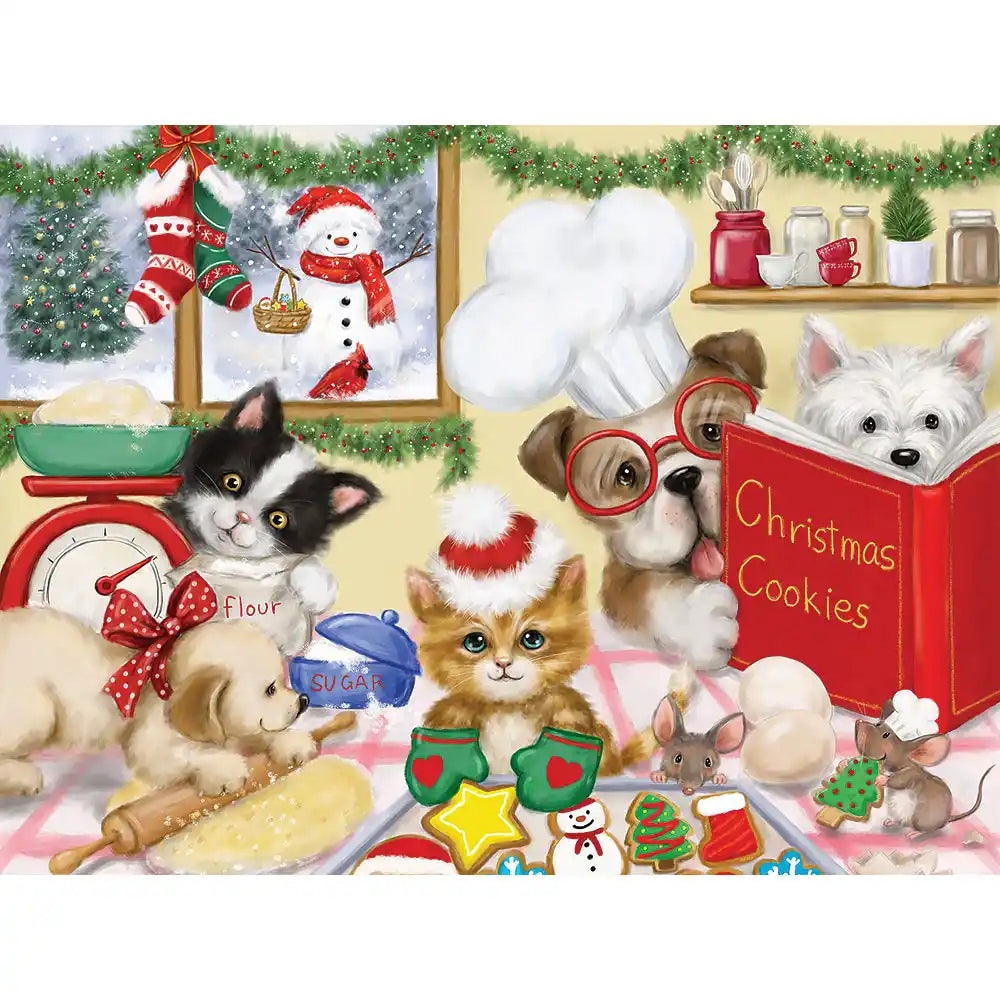 Dogs and Cats Making Christmas Cookies Jigsaw Puzzle