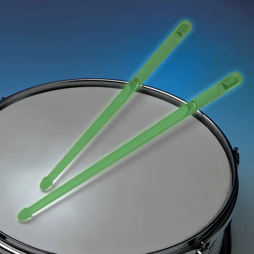 An outstanding effect for the stage or for fun drumming on any object such as books, the floor or your lap. When the sticks strike any object, they light up creating a brilliant and dramatic light show. Includes three button batteries. Plastic. 16-3/4" long.