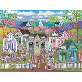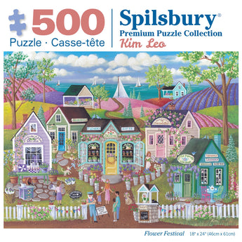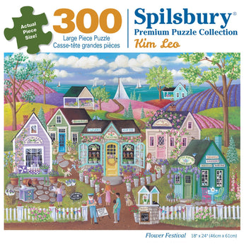 Immerse yourself in the charm of small-town life with this jigsaw puzzle, Flower Festival, designed by Kim Leo. This delightful scene features a vibrant marketplace filled with colorful flowers, charming storefronts, and a picturesque coastal backdrop. Perfect for puzzlers of all ages, this 18" x 24" puzzle is a celebration of community and beauty.