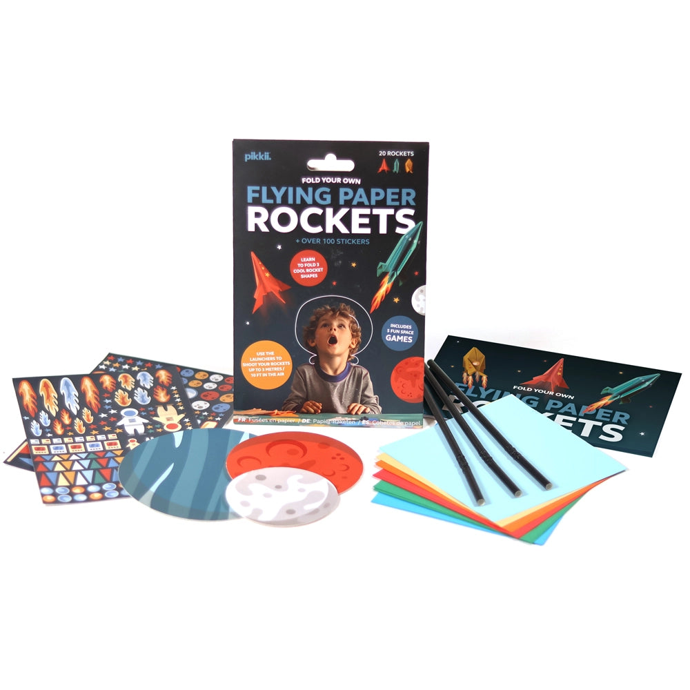 Fuel their imagination with the Flying Paper Rockets Kit, a hands-on adventure for kids ages 6 and up. This screen-free set includes everything needed to fold, decorate, and launch 20 colorful paper rockets in three unique shapes. With fun stickers and easy-to-use launchers, kids can send their creations soaring sky-high. It’s the perfect mix of creativity and motion for curious minds and little explorers.