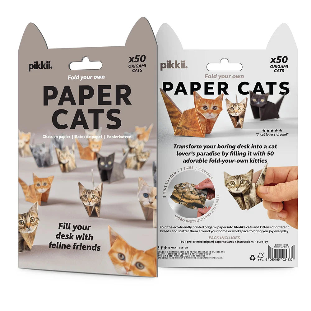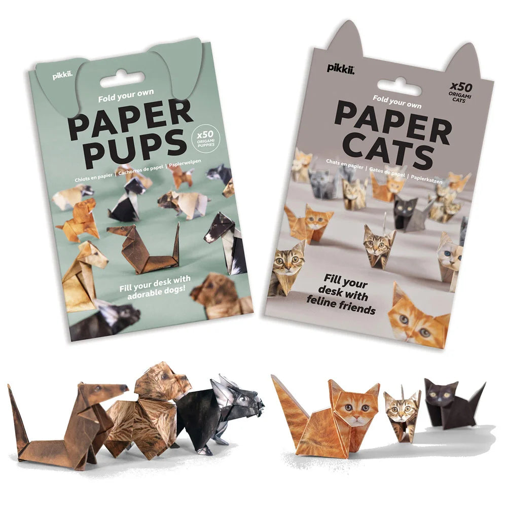 Fill your desk with furry charm—no feeding required! Choose from Paper Cats or Paper Pups and create your own litter of adorable desk companions. Each pack includes 50 sheets of eco-friendly origami paper, printed with lifelike designs of various breeds and sizes. Simply follow the step-by-step instructions included and fold each one in about 5 minutes. Before you know it, you’ll have a whole pack of paper pets! Made for ages 8 and up, these DIY delights are responsibly crafted using FSC-certified paper from well-managed forests, printed with soy-based ink, and 100% plastic-free.