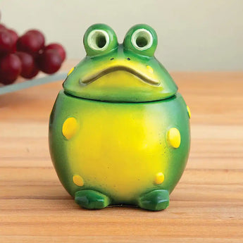 Fill our adorable whimsical trap with liquid lure to draw pesky bugs away from your fruit. Even when not in use, it makes a great display on a kitchen countertop, table, or shelf. Recipe for lure using common household ingredients included. Use again and again to rid your home of those annoying bugs. Sculpted of hand painted polyresin. Measures 3"x 3" x 3-3/4". Hand wash.