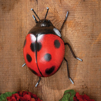 Liven up your outdoor spaces with our ladybug sculpture. Fashioned after the gardener's favorite friend, our metal sculpture is suspended on a steel spring that allows it to bobble when moved. Made of weather resistant metal and painted with realistic details. Hang on a wall or sit flat on any surface. Makes a wonderful gift for any gardener. Measures 5-1/2" wide x 6" long.