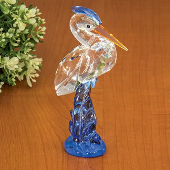 An iconic reminder of the natural beauty of our coastlines. Our proud heron stands in a glittering display of reflecting facets of glass. Beautifully detailed with sparkling blue crown and orange pointed beak, it stands on a solid sculpted blue base. A stunning gift for any lover of nature and our waterways. Measures 5-1/2" x 1-5/16" x 2-1/2".
