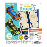 Decorate your own race car that can glow in the dark as you play! Includes 2 wood race cars, 1 sticker sheet, 1 stencil sheet, instructions, non-toxic glow in the dark finish, 5 acrylic paints, 1 flat-tipped paint brush. Ages 4 and up.