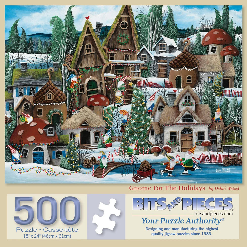 Tucked in a snowy forest, the gnomes are busy decking every mushroom roof and gumdrop fence with candy canes and Christmas cheer. In the Gnome for the Holidays jigsaw puzzle by Debbi Wetzel, tiny skaters twirl across frozen ponds, peppermint paths wind between cozy cottages, and mischief is never far behind. It's a joyful, quirky winter village you'll want to visit piece by piece.