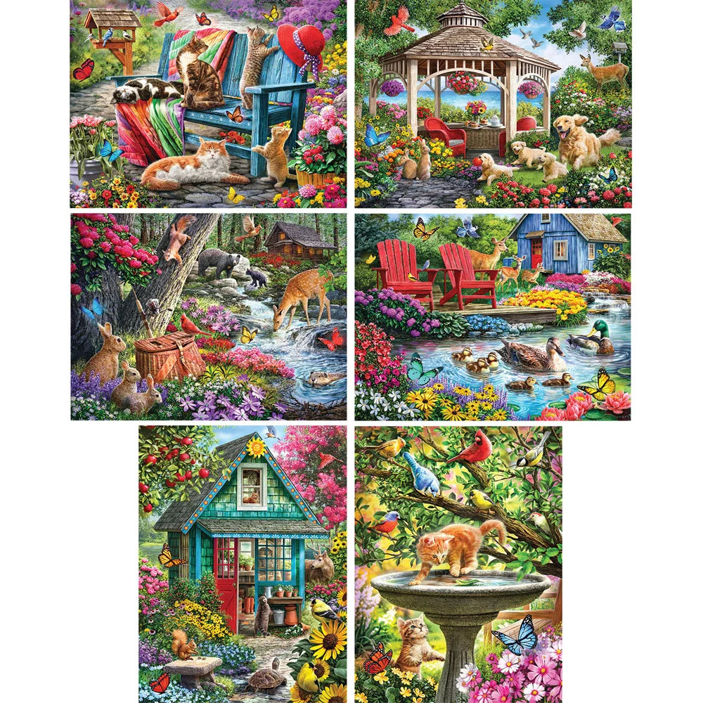 Set of 6: Garden Friends Jigsaw Puzzles by Larry Jones