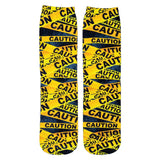 Not going with a full costume this year? Toss on these fun and funky Halloween socks to add subtle scariness to your attire! These socks, decorated with crime scene tape, are the perfect gift for thriller movie fans or true crime aficionados. Surprisingly comfy, it would be a crime to leave these in the drawer this spooky season! Polyester/nylon/spandex/elastodiene. Fits women's 10-12-1/2 and men's 8-1/2-13.