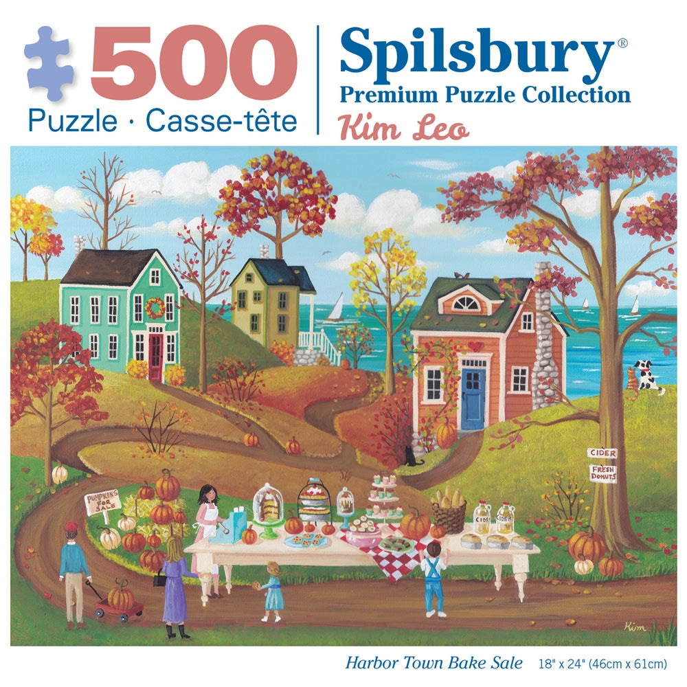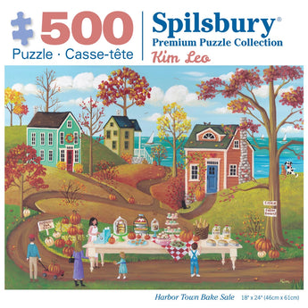 Celebrate the cozy charm of autumn with the Harbor Town Bake Sale jigsaw puzzle, designed by Kim Leo. This delightful scene captures the essence of a small-town community bake sale, featuring colorful fall foliage, quaint seaside homes, and tables filled with delicious treats. Measuring 18" x 24", this puzzle is perfect for anyone who loves the warmth and joy of fall gatherings.