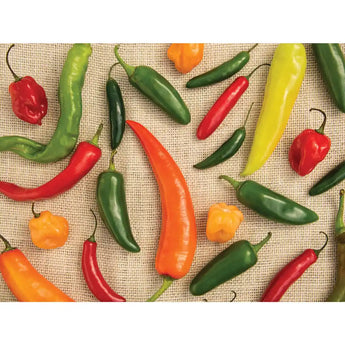 This vibrant jigsaw puzzle features a fiery hot pepper mix, showcasing a tantalizing blend of green, red, and yellow peppers. The intricate details capture the intensity of colors and shapes, providing a challenging yet visually stimulating puzzle-solving experience. Puzzles are renowned for their engaging complexity, offering a satisfying challenge with their smaller, intricate pieces.