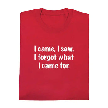Stay relatable and hilarious with this witty cotton t-shirt that reads, "I came, I saw, I forgot what I came for." Perfect for anyone who’s ever lost their train of thought, this shirt combines humor with everyday truth. Made from soft, breathable fabric, it’s as comfortable as it is funny. Ideal for casual outings, gifting, or simply making people smile!