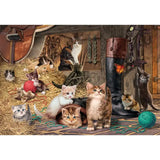 This 300 large piece jigsaw is designed by Steve Read and measures 18" x 24". The kittens investigate the barn where they romp in the hay and roll balls of yarn. Available in two piece count.