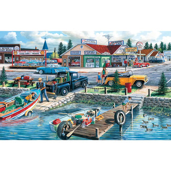 Step into a bustling marina with Lakefront Treasury, a puzzle bursting with life and activity. From colorful boats to vintage cars and charming shops, this scene is a tribute to the vibrant energy of lakeside communities. Piece together the nostalgia of sunny days spent at the docks. Perfect for fans of boating, vintage charm, and lively outdoor scenes!