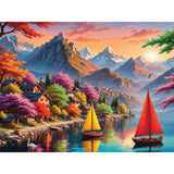 Let the breathtaking beauty of Lakeside Village by Yuri Khrushch take you away to a serene alpine escape. This stunning puzzle captures a tranquil lakeside town nestled beneath majestic, snow-capped mountains. Vibrant trees in full bloom line the village, their colors reflecting beautifully in the crystal-clear water. Brightly colored sailboats drift peacefully, while swans glide gracefully along the shore, completing this idyllic scene. Perfect for puzzle lovers and nature enthusiasts, this captivating artwork invites you to piece together the tranquility of a mountain paradise. Escape to the charm and serenity of Lakeside Village, one puzzle piece at a time!