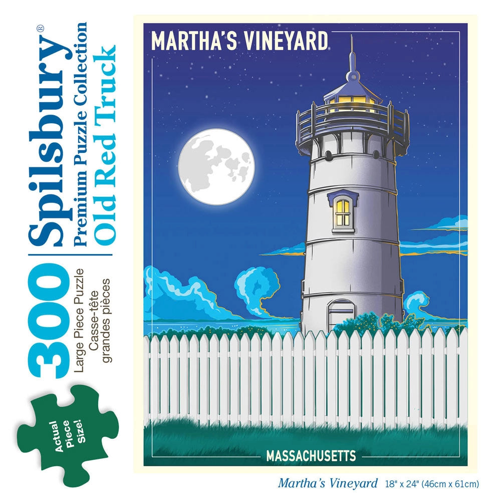 Immerse yourself in the serene charm of Martha's Vineyard with this delightful puzzle by Old Red Truck. Featuring a picturesque lighthouse under a moonlit sky, this artwork captures the tranquil beauty of this iconic Massachusetts destination. Perfect for lighthouse enthusiasts and puzzle lovers alike, this piece brings coastal serenity to your home.