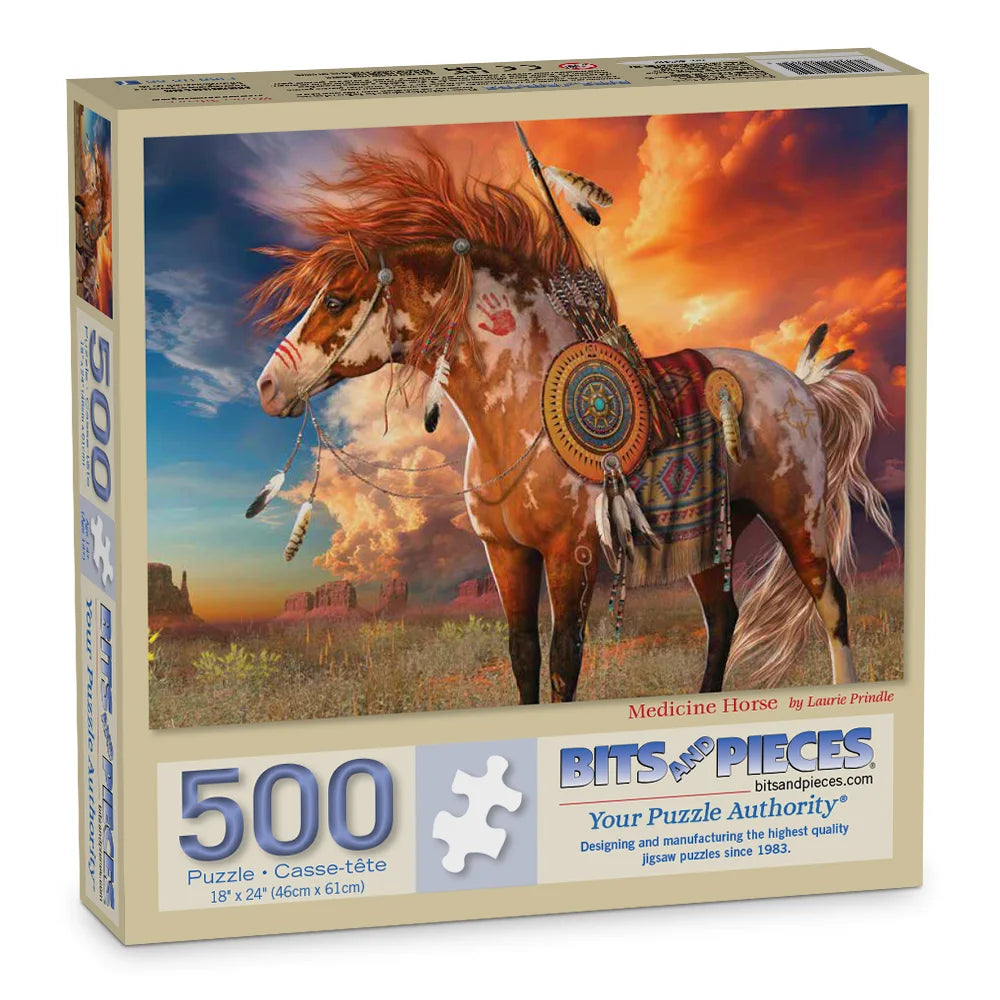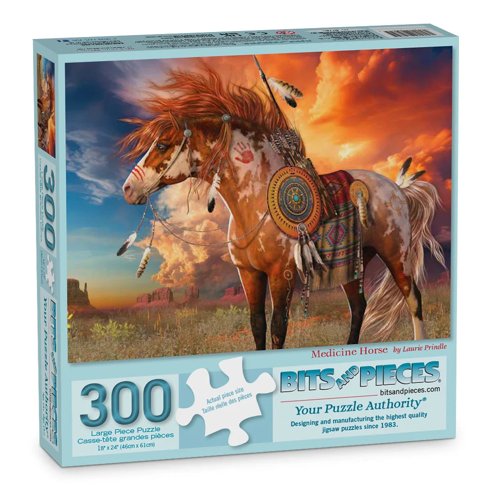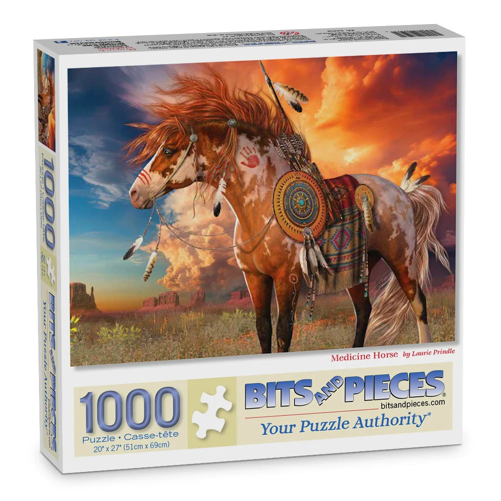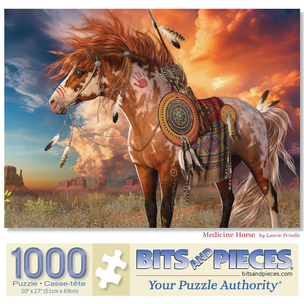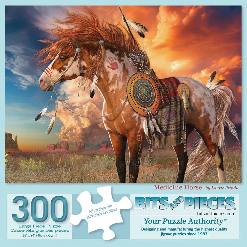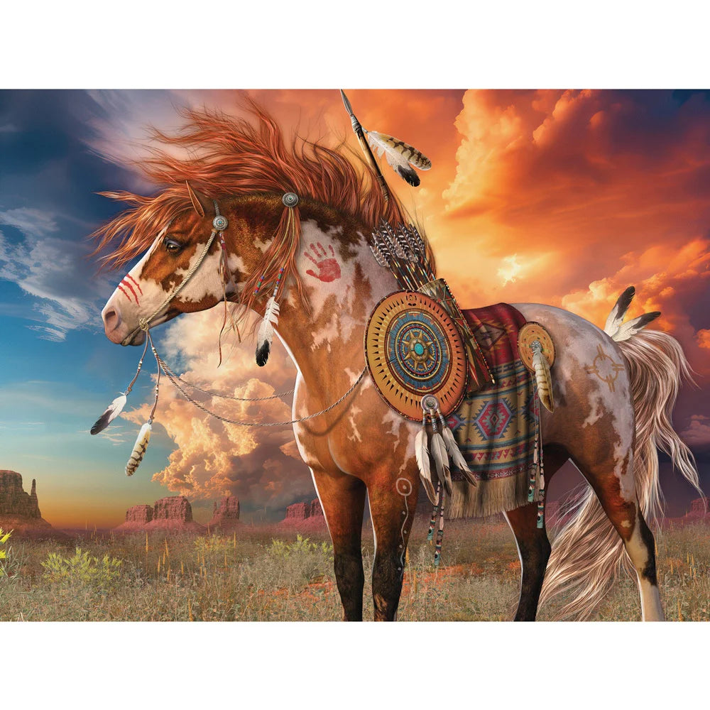 Medicine Horse by Laurie Prindle is a powerful portrait of a painted horse against a dramatic western sky. Rich in Native American symbolism, this jigsaw puzzle is a striking tribute to strength and spirit.
