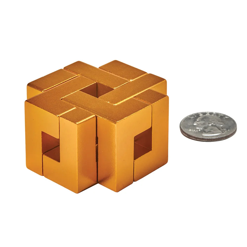 Double your puzzling fun with this stylish set of two metal brainteasers! Featuring the Green Hashtag(2" X 2") and Golden Knot(2" x 1¼"), both crafted from sleek aluminum alloy, this duo offers unique challenges and a modern, tactile twist on classic brainteasers. Perfect for gifting or keeping on your desk for a quick mental break. Recommended for ages 14 and up. Made from aluminum alloy.