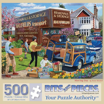 Experience the charm of nostalgia with this delightful puzzle by Trevor Mitchell, depicting the hustle and excitement of a classic moving day. From vintage vehicles to the vibrant garden setting, every detail captures the essence of a simpler time. Enjoy piecing together this heartwarming scene filled with family activity and charm.