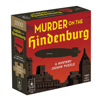 Unravel the mystery with Murder on the Hindenburg, a thrilling 1000-piece jigsaw puzzle by Bepuzzled. Measuring 23" x 29", this puzzle combines the engaging challenge of intricate pieces with a captivating storyline of romance, betrayal, and murder. As you assemble, uncover hidden clues to solve the mystery—but don’t be fooled, the puzzle image differs from the box cover! Perfect for ages 15 and up, it’s the ultimate brain-teasing adventure. Dive into the intrigue and see if you can crack the case!