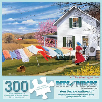 Step back into a serene countryside moment with this puzzle crafted by John Sloane.You'll join in the simple pleasure of laundry day in a rural setting where the breeze carries the promise of spring. The freshly laundered sheets dance alongside blooming trees, as a gentle farmer's wife, in her red dress, adds a touch of color to the tranquil farmland. This puzzle will not only challenge your mind but also warm your heart with its timeless beauty. Available in multiple piece count. Puzzlesare renowned for their engaging complexity, offering a satisfying challenge with their smaller, intricate pieces.