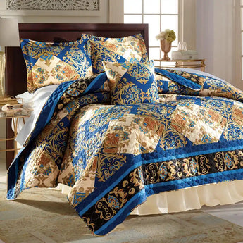Snuggle into regal warmth with this sophisticated Persian Nights quilt set and pillow! Soft, long-wearing polyester microfiber with polyester fill is easy-care. Machine wash. Imported. Available in: