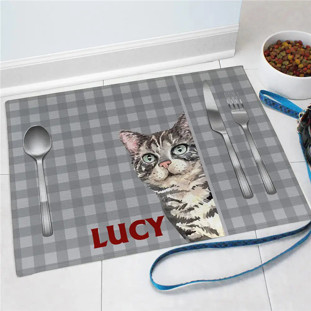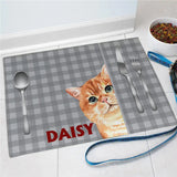 Turn mealtime into a five-star experience with this personalized pet placemat! Featuring your furry friend's name (up to 12 characters) and adorable breed illustration, this 18" x 24" placemat has a smooth fleece surface and a durable, non-slip latex backing. Easy to wipe clean, it’s perfect for keeping floors tidy in style. Choose from a wide variety of dog and cat breeds to make it uniquely theirs.