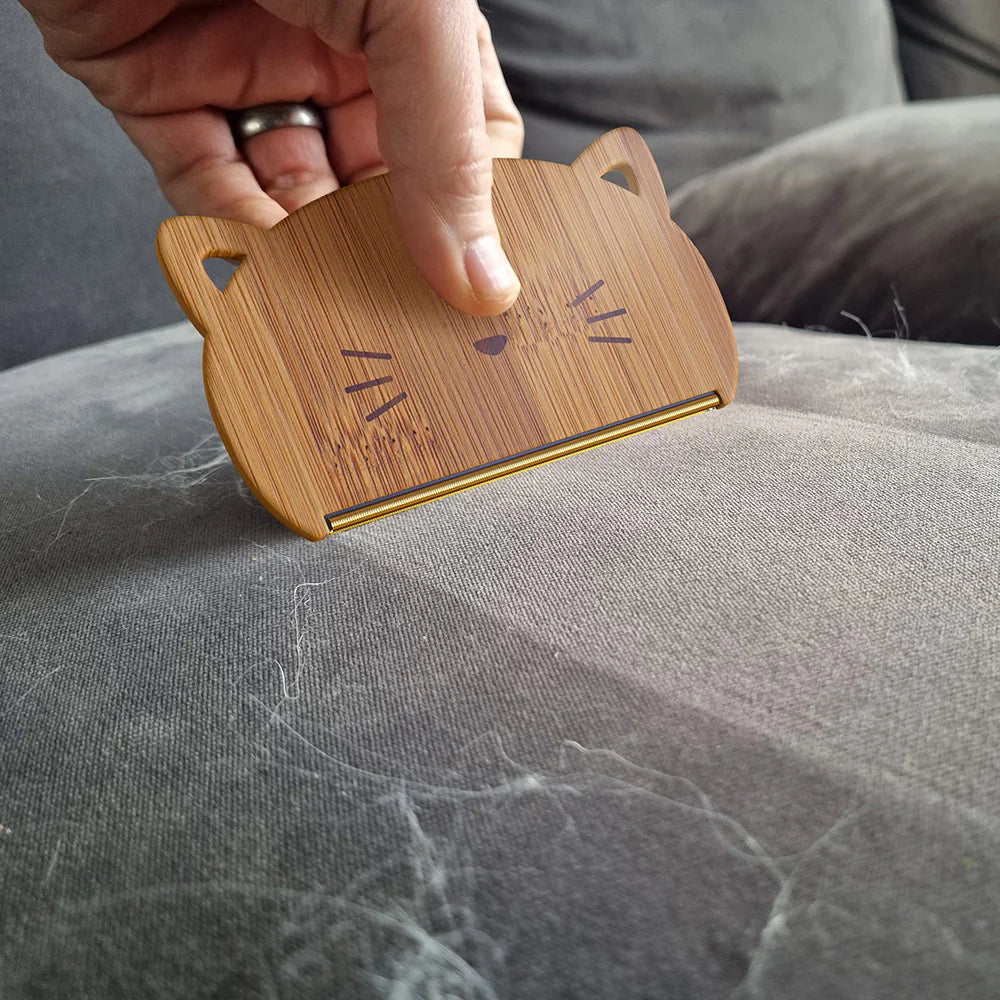 Ditch disposable lint rollers for good. Crafted from premium sustainable bamboo and durable metal, this eco-friendly tool removes pet hair from furniture, carpets, and clothing in just a few effortless strokes. Watch as hair lifts away like magic, leaving your surfaces as tidy as your pet is cute. Lightweight, portable, and built to last, it’s the ultimate must-have for pet owners. Best of all? It never runs out. 5.5" x 3"