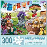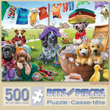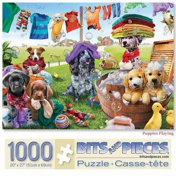 This jigsaw puzzle is designed by Adrian Chesterman and available in multiple piece count. The puppies have fun playing in the laundry outside. Bubbles float everywhere as two puppies play in the soap.
