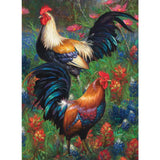 Experience the vibrant beauty of the countryside with this stunning 1,000-piece jigsaw puzzle by Mark Keathley. Featuring two majestic roosters in a lush field of wildflowers, this artwork bursts with rich colors and intricate details. Measuring 19" x 26-5/8", this puzzle is a delightful challenge for bird lovers and nature enthusiasts alike.
