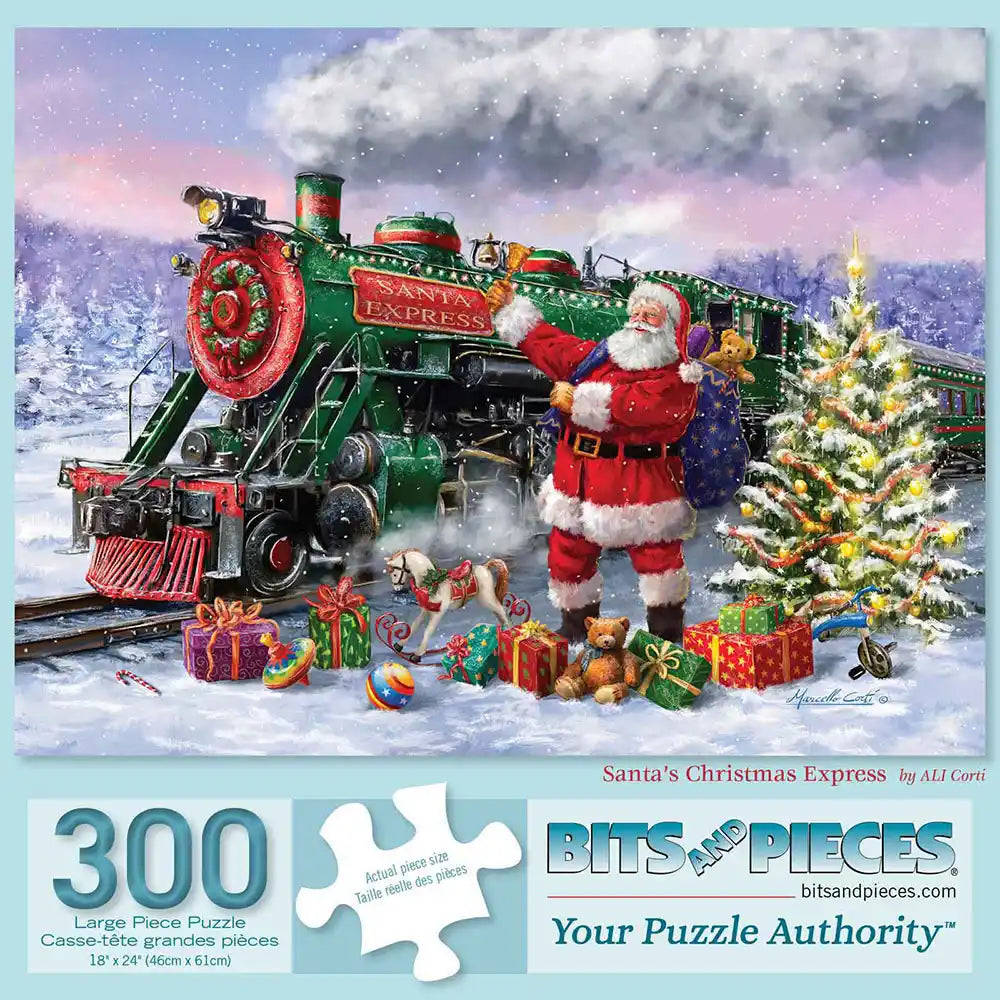 This jigsaw puzzle is designed by ALI Corti and available in multiple piece count. Puzzles are perfect for both intermediate puzzle enthusiasts and group activities. Explore Santa's backup mode of transportation when his sleigh is in the shop - an elegant train! Santa stands proudly in front of this festive locomotive, ready to deliver joy and toys to boys and girls. Available in multiple piece counts.