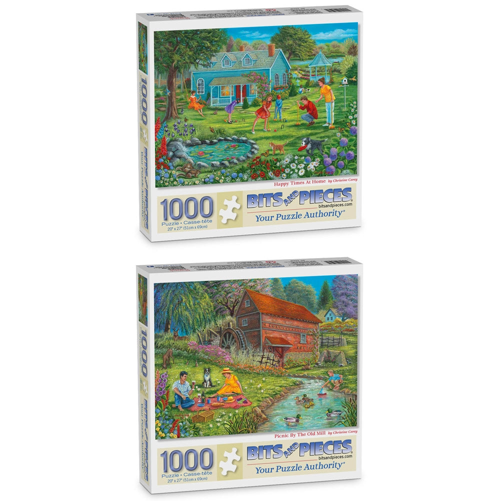 Bring home a bit of countryside peace with Country Charm, a two-jigsaw puzzle set by artist Christine Carey. Happy Times at Home captures a cozy cottage surrounded by blooming flowers, while Picnic by the Old Mill offers a sunlit riverside escape. These charming jigsaw puzzles are perfect for anyone who loves warm, welcoming scenes and peaceful places.